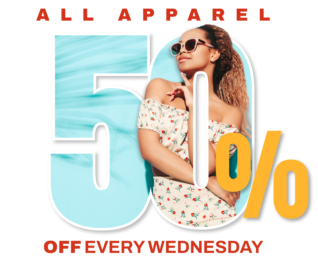 all apparel in the store will be 50% off! This is a great opportunity to Explore your favorite items, uncover treasures, or kick off a DIY project!